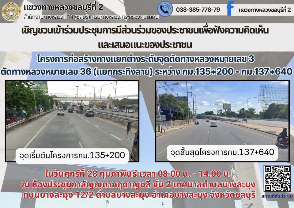 11 13/03/2568 เจ้าหน้าที่หมวดทางหลวงบางละมุง ร่วมลงพื้นที่ ประชาสัมพันธ์ แจกใบปลิว เชิญชวนประชาชน