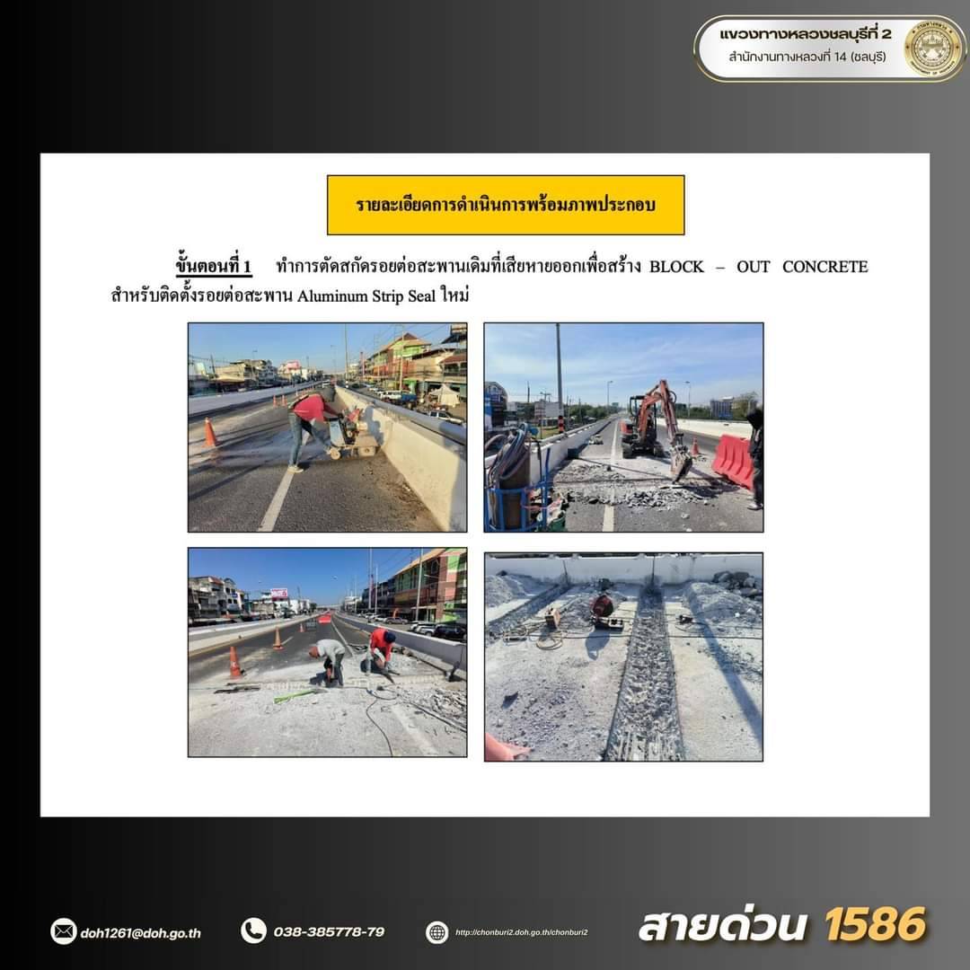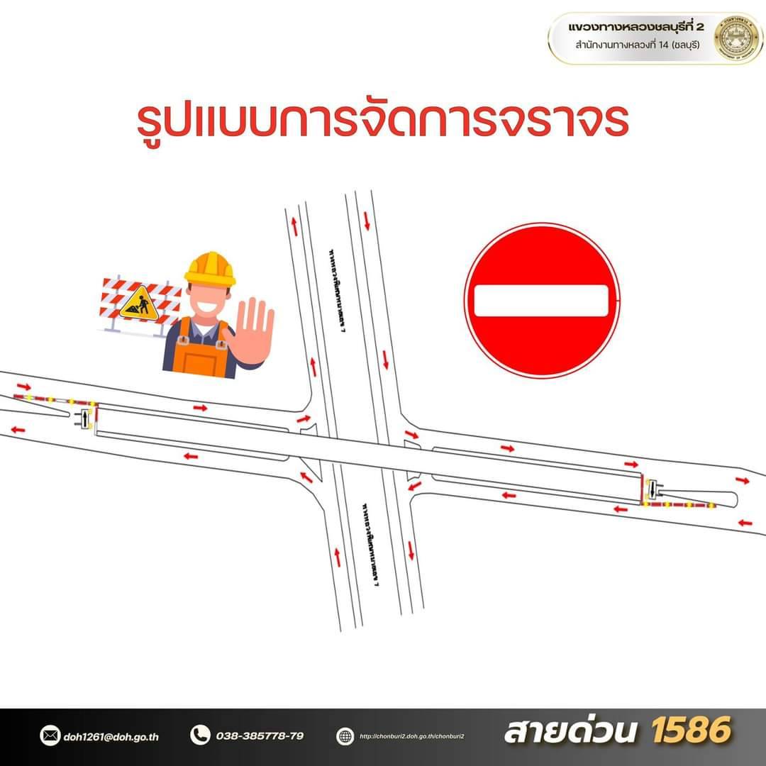 ในระหว่างดำเนินการอาจทำให้ไม่ได้รับความสะดวก แขวงทางหลวงชลบุรีที่ 2 ต้องขออภัย ณ โอกาสนี้ และขอให้ประชาชนใช้เส้นทางอย่างระมัดระวัง หรือหลีกเลี่ยงการใช้เส้นทางและปฏิบัติตามป้ายเตือน ป้ายแนะนำทางเลี่ยง ป้ายเสริมจากโครงการ และสัญญาณจราจรที่ติดตั้ง เพื่อประโยชน์ต่อการเดินทาง