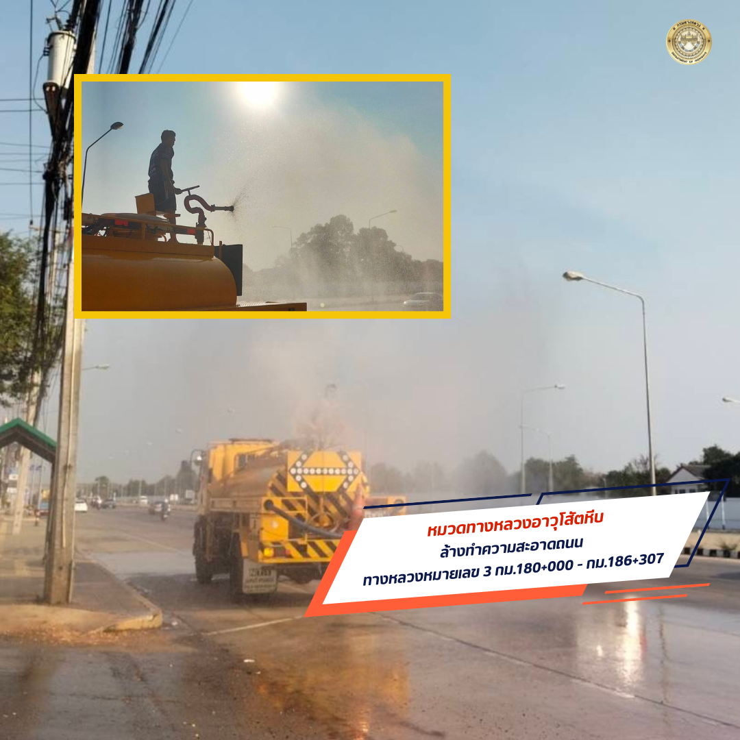 โดยใช้วิธีการฉีดพ่นน้ำ บริเวณในสายทาง