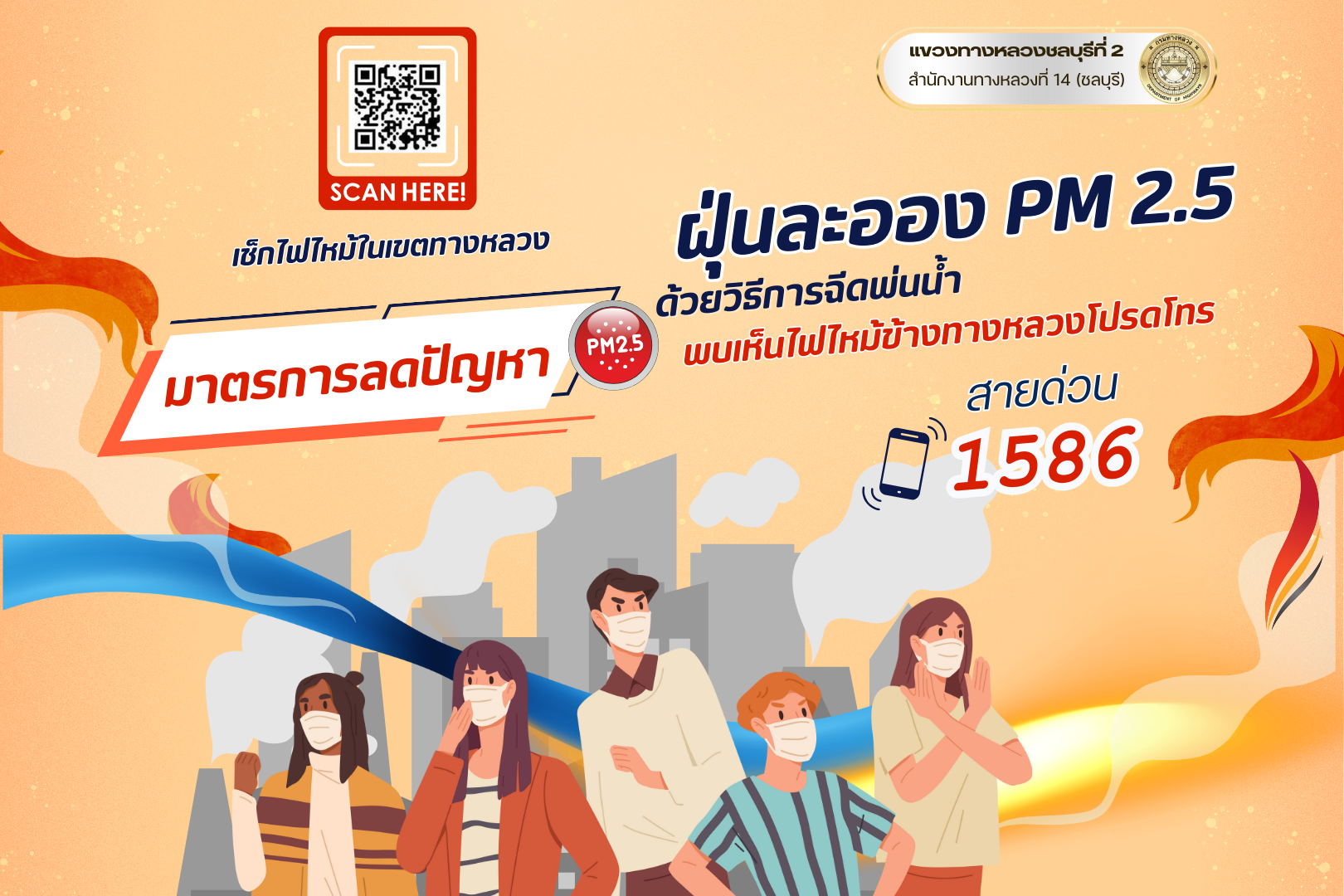และกำชับดูแลเหตุไฟไหม้ข้างเขตทางหลวง ซึ่งเป็นสาเหตุทำให้เกิดฝุ่นละอองขนาดเล็ก